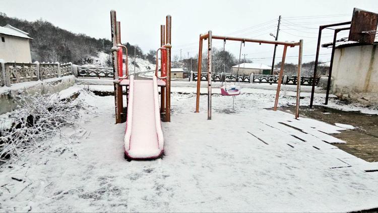 Edirne'nin Bulgaristan'a sınır köyleri kar yağışıyla beyaza büründü.