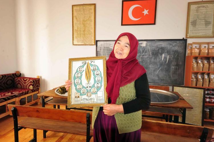 Bu okulun kurulmasına sebep olan Atatürk. Bu okul bizzat Atatürk'ün emriyle yapılmış. Biz de burada hem okuduk hem de çalışıyoruz. Benim babam, beni çarşıya bile götürmezdi. 'Kızlar çarşıya gitmez' derdi ama şimdi kadınlarımız açıldı. Önceki gibi sadece tarlada, evde çalışan, sadece çocuk büyüten kadınlar yok. Çarşıya, pazara, işe her yere kendimiz gidiyoruz. Önce bu okulda okuduk, sonra çocuklarım okudu. Şimdi de bu okulda ekmek paramızı kazanıyoruz. Okuduğumuz sıralarda oturuyoruz. Okuma-yazma öğrendiğim sıralarda şu anda ekmek paramızı kazanıyoruz" diye konuştu.