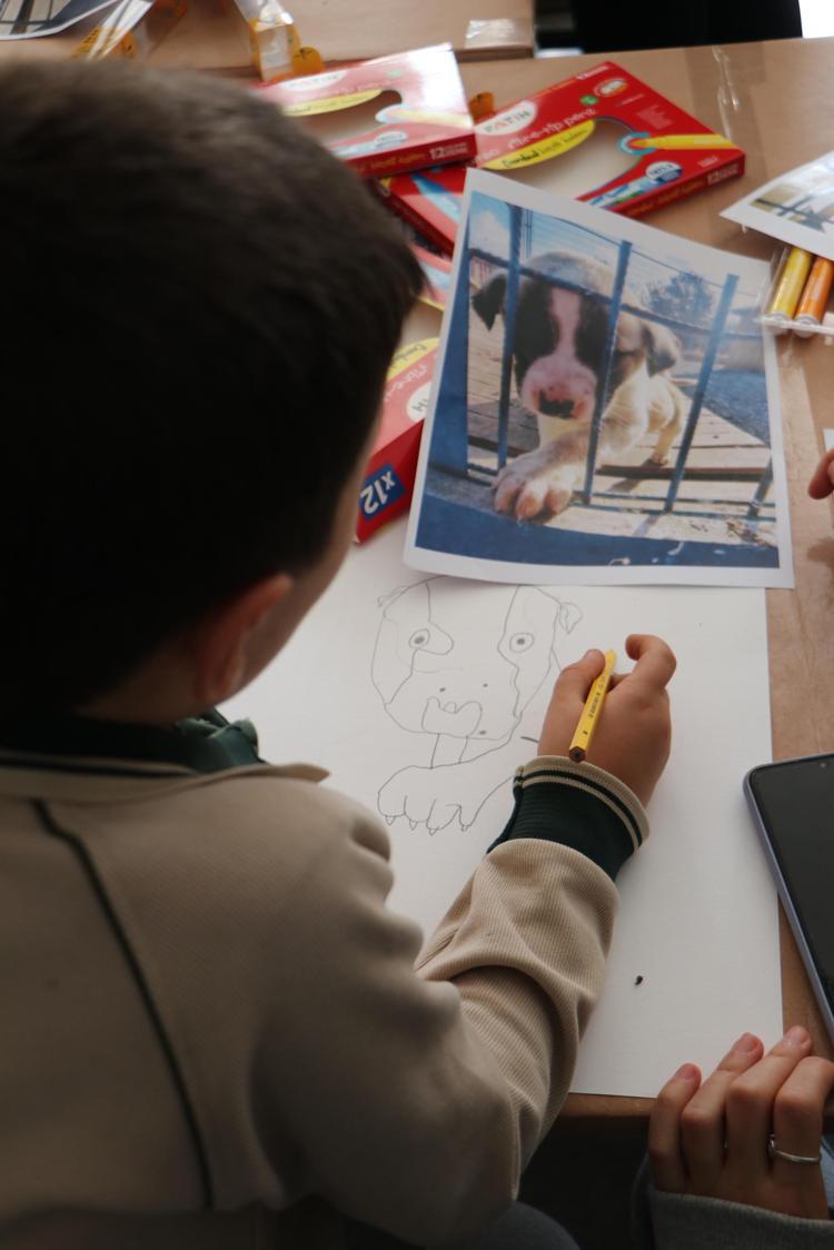 Kedi, köpek ve tavşandan oluşan fotoğrafları seçen öğrenciler, üniversiteli ağabey ve ablalarının yardımıyla resim yapmaya başladı. Yaklaşık 1 saat süren çalışma sırasında minikler, barınakta gördükleri hayvanların resimlerini yaptı. Resimlerini tamamlayan öğrencilerin çalışması Doç. Dr. Cemile Didem Özışık'tan tam puan aldı.