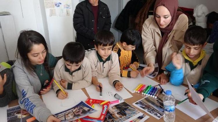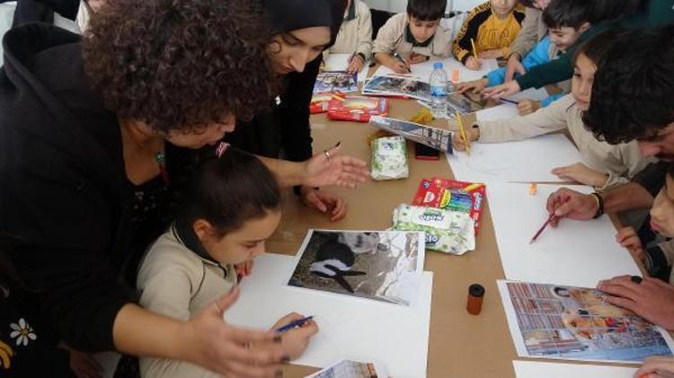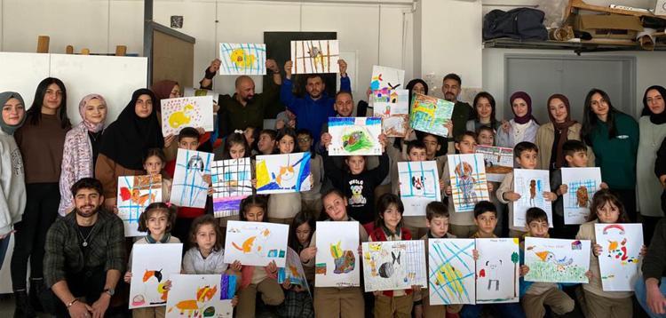 Barınak gezisi sonrası Güzel Sanatlar Fakültesi Resim Bölümü atölyesinde misafir edilen ilkokul öğrencilerine kağıt ve boya kalemleri veren Özışık, yazıcıdan çıkarılan hayvan fotoğraflarını dağıtarak resimlerini yapmalarını istedi.