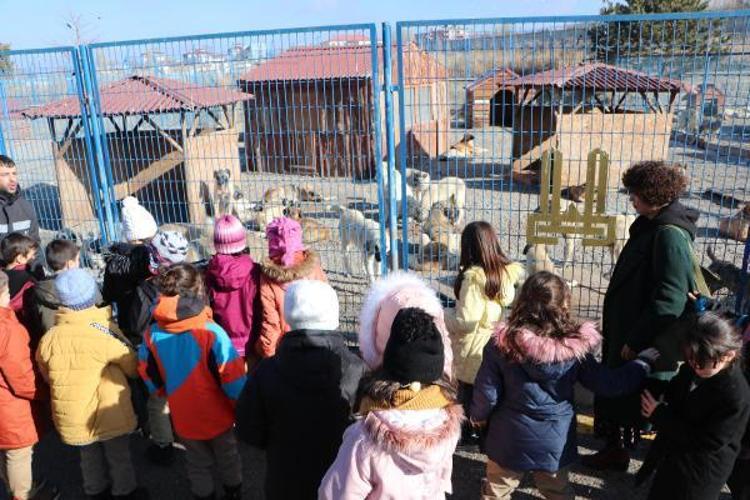 Erzurum Atatürk Üniversitesi Güzel Sanatlar Fakültesi Resim Bölümü Başkanı Doç. Dr. Cemile Didem Özışık ve öğrencileri, 'Hayvan sevgisini resimle ifade ediyorum' toplumsal duyarlılık projesi kapsamında, ilkokul 2'nci sınıf öğrencilerini hayvan barınağına götürdü. Kedi evi ve köpeklerin kaldığı bölümü gezen öğrenciler, fotoğrafı çekilerek yazıcıdan çıkarılan fotoğrafları renkli kalemlerle resmetti.