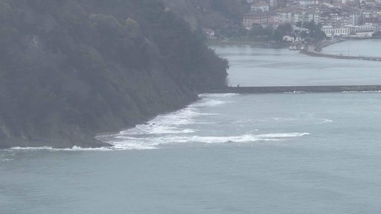 Bartın'ın Amasra ilçesinde fırtına nedeniyle dalga boyu 3 metreye ulaştı. Balıkçı tekneleri limana çekilirken, 2 kuru yük gemisi de demir atıp beklemeye başladı.