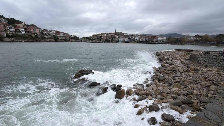 Meteoroloji Genel Müdürlüğü'nün uyarısı sonrası Amasra'da fırtına etkili oldu, denizde dalga oluştu. Amasra Büyük Liman'da beton bloklara çarpan dalgaların boyu, 3 metreyi buldu.