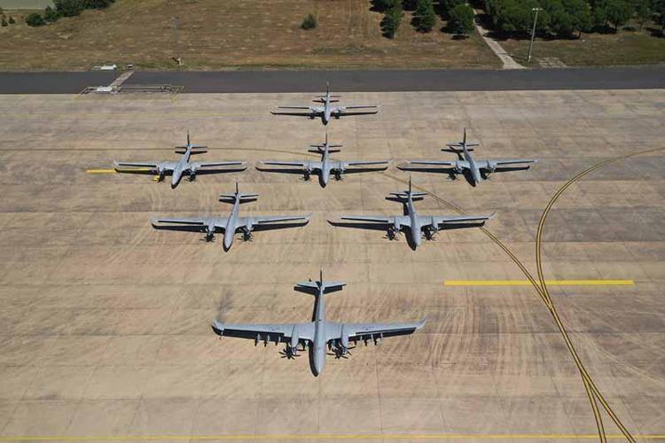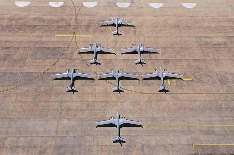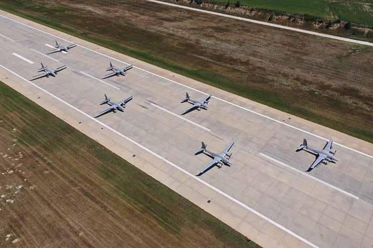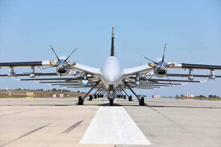 Çorlu Hava Meydan Komutanlığı'nda bulunan eğitim ve test faaliyetleri için kullanılan 3 AKINCI TİHA ile Hava Kuvvetleri Komutanlığına teslimi edilecek olan 4 AKINCI TİHA birlikte fotoğraf ve video çekimine katıldı.