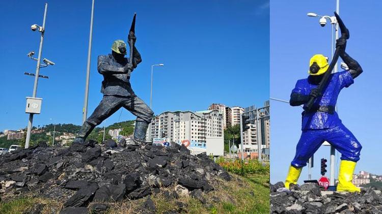 Boyamasıyla tepki çeken madenci heykelinin boyaları kazındı