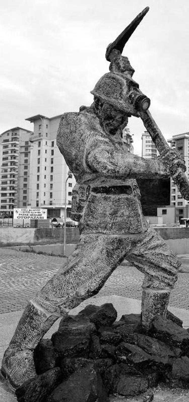 Zonguldak'ın Kozlu ilçesinde 2 yıl önce boyaması tepki çeken madenci heykelinin boyası, belediye ekipleri tarafından kazındı. Heykel, orijinali olan bronz rengine geri döndürülmeye çalışıldı.