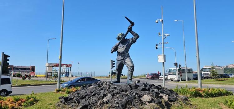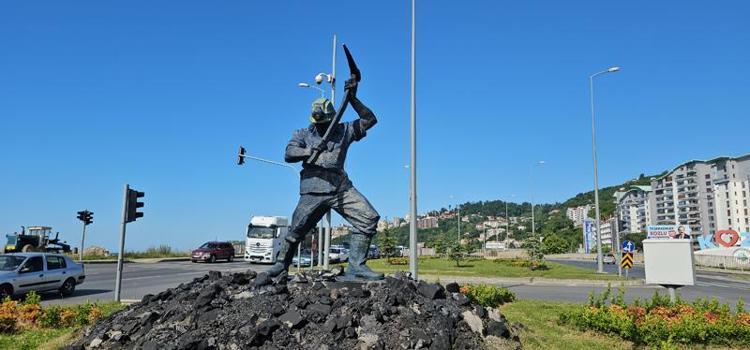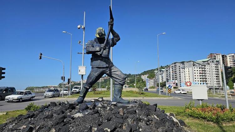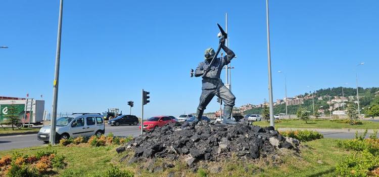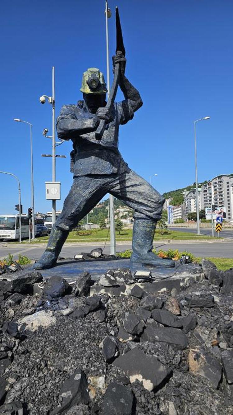 Kozlu Belediyesi Fen İşleri Müdürlüğü ekipleri bugün, heykelin üzerindeki mavi, sarı ve siyah boyaları kazıdı.