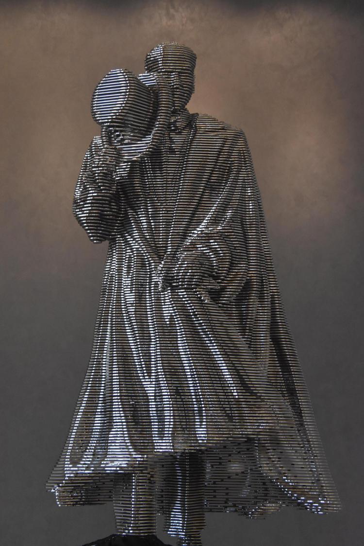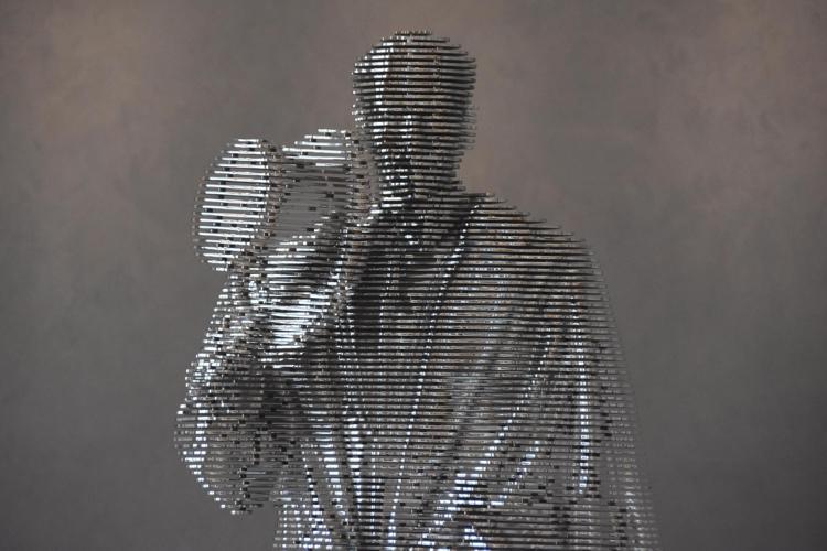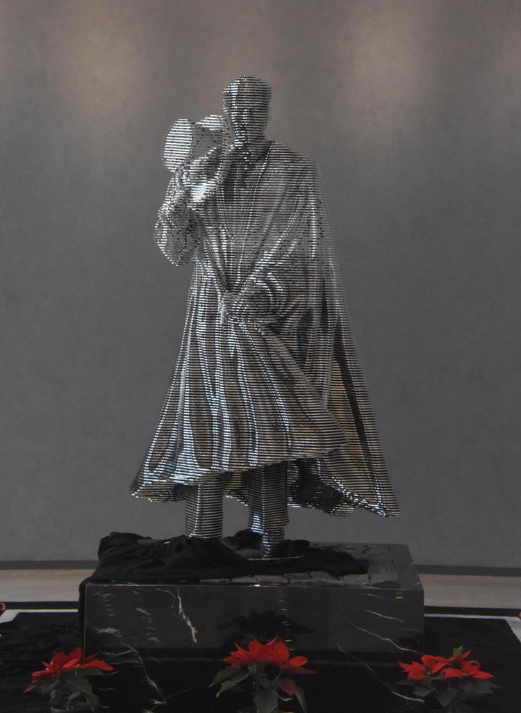 Metal sanatçısı ve heykeltıraş Rıdvan Sevim'in paslanmaz çelikten yaptığı ve İzmir'de Aliağa Organize Sanayi Bölgesi (ALOSBİ) idari binasına yerleştirilen siyah pelerin ve silindir şapkalı Atatürk heykelinin açılışı törenle yapıldı.