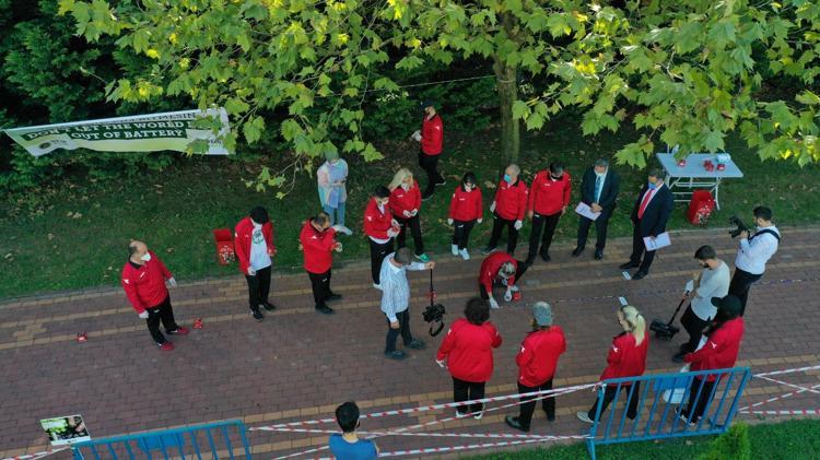 İzmit Saraybahçe İlkokulu, iklim değişikliği, sıfır atık ve geri dönüşüme dikkat çekmek için toplanan atık pillerle 27 Eylül 2021'de rekor denemesi yaptı.