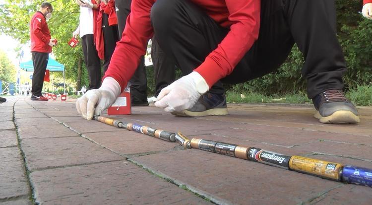 Çevreci öğrencilerin atık pil dizme rekoru Guinness'e girdi