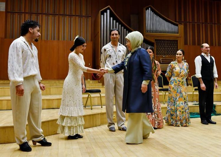 İspanya'nın Ankara Büyükelçiliği ile Muğla Fahri Konsolosluğunca, tüm geliri Gazze halkına bağışlanacak flamenko gösterisi CSO Ada Ankara'da Cumhurbaşkanı Recep Tayyip Erdoğan'ın eşi Emine Erdoğan ve Cumhurbaşkanı Yardımcısı Cevdet Yılmaz'ın katılımıyla gerçekleştirildi.