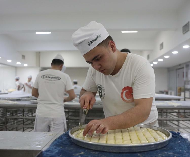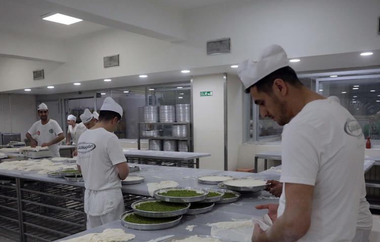 Sahur vakti tezgahlarının başına geçen ustaların el emeği ile hazırladığı baklavaların yarısı paketlenerek yurt dışına, önemli bölümü de farklı şehirlere uçak ya da otobüs ile ulaştırılıyor.