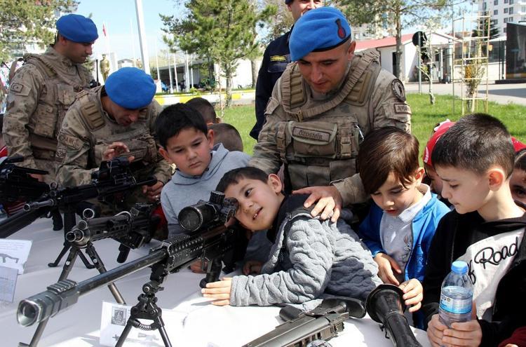 İl Jandarma Komutanlığı'nı ziyaret eden öğrenciler jandarma komutanlığı bahçesinde kurulan stantlarda silah, teçhizat ve araçları inceledi. Yaklaşık 1600 öğrenci, bomba arama köpeği ile narkotik madde arama köpeklerinin gösterilerini de ilgiyle takip etti.