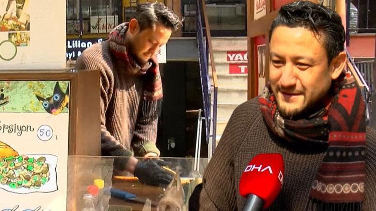 Japon esnaf Yuji Umeji (40) 10 yıl önce Türkiye'ye yerleşti. İstanbul Kadıköy'de oturan Umeji, sokak lezzeti olan kelle söğüşün tadına baktıktan sonra tutkunu oldu.