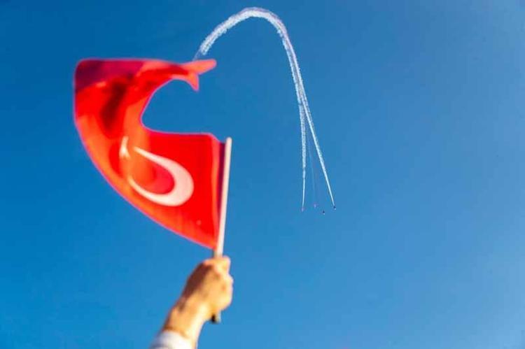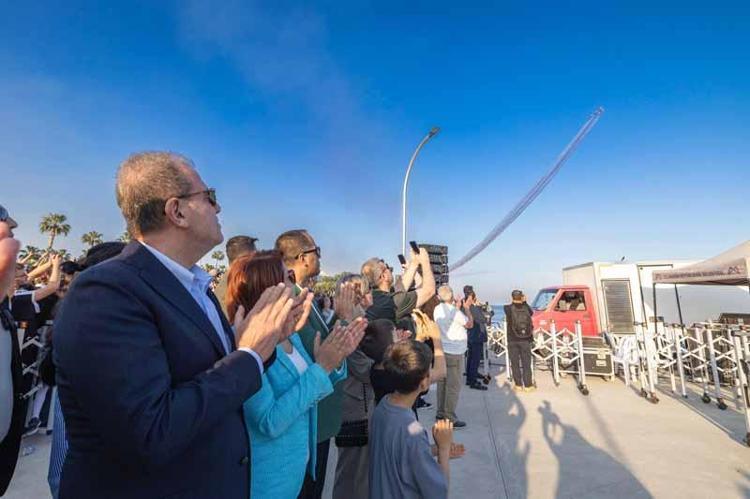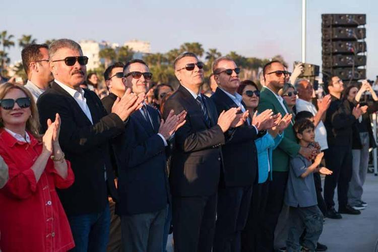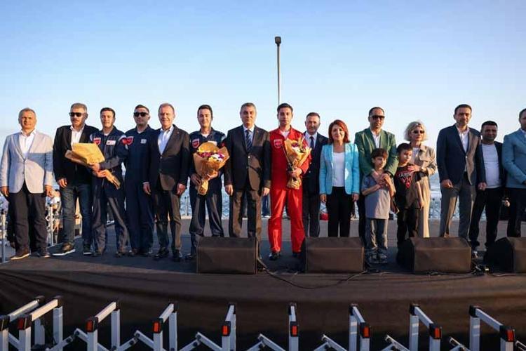 Mersin Valisi Atilla Toros ile Mersin Büyükşehir Belediye Başkanı Vahap Seçer, milletvekilleri ilçe belediye başkanlarının izlediği gösteride Türk Yıldızları, gökyüzünde görsel bir şölen oluşturdu.