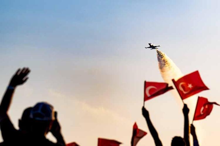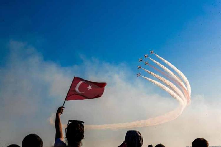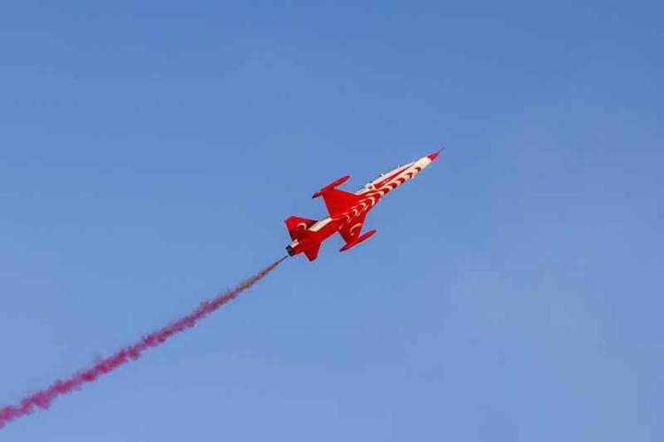 Türk Yıldızları gösteri sırasında, gökyüzünde renkli duman izleri gerçekleştirdiği hareketleri izleyen vatandaşlar cep telefonları, video kameraları ve fotoğraf makineleri ile anı kayıt altına aldı.