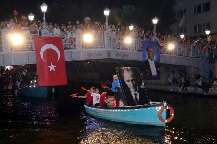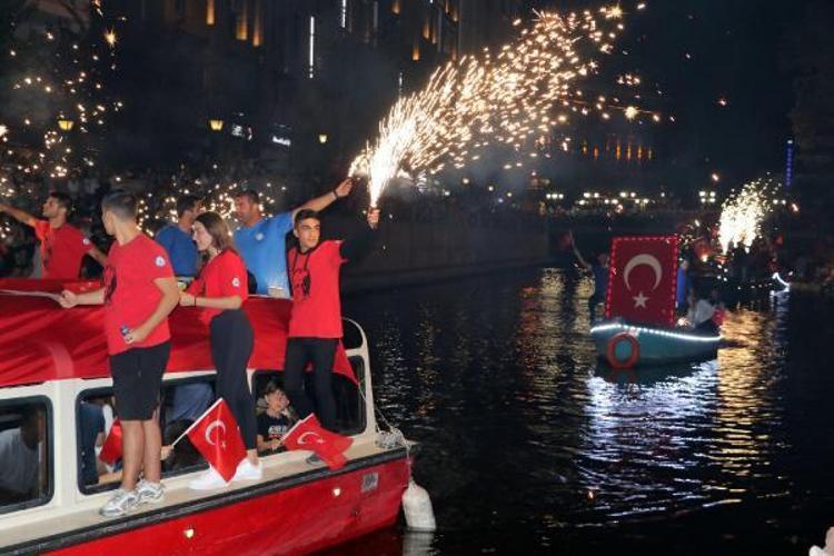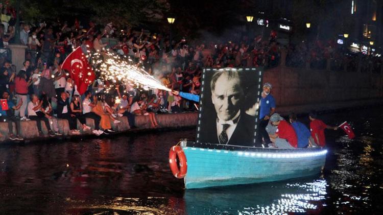 Eskişehir’de 30 Ağustos Zaferi’nin 100'üncü yıl dönümü Porsuk Çayı’nda tekne ve gondollarla düzenlenen fener alayıyla kutlandı. Fener alayını binlerce Eskişehirli çay kıyısında Türk bayraklarıyla karşıladı.