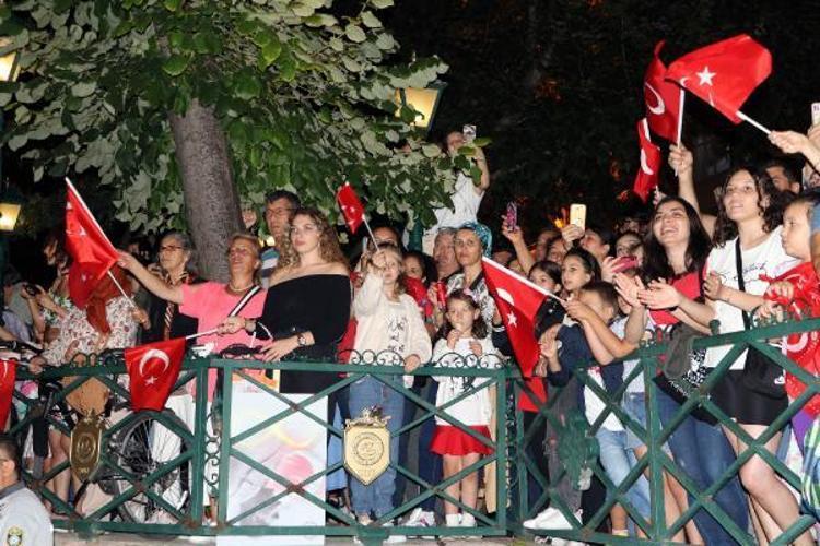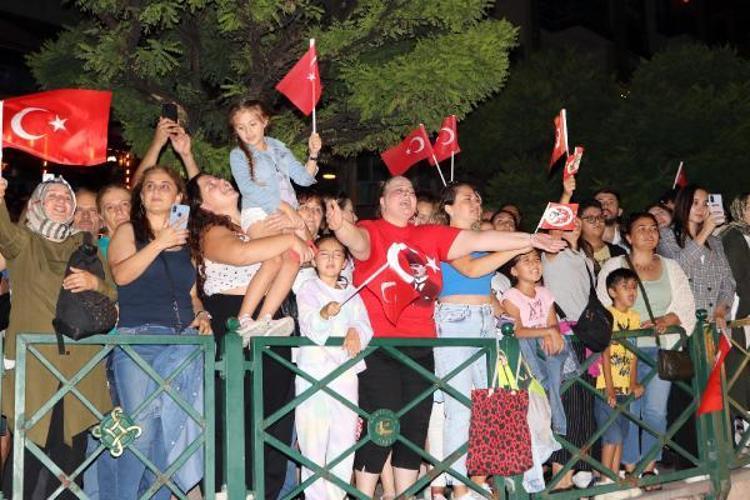 Binlerce Eskişehirli, fener alayın gelişini çalınan marşlara eşlik ederek bekledi.