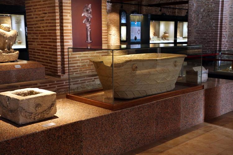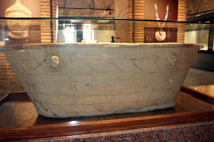 Roma dönemine ait banyo küveti cam fanusta sergileniyor