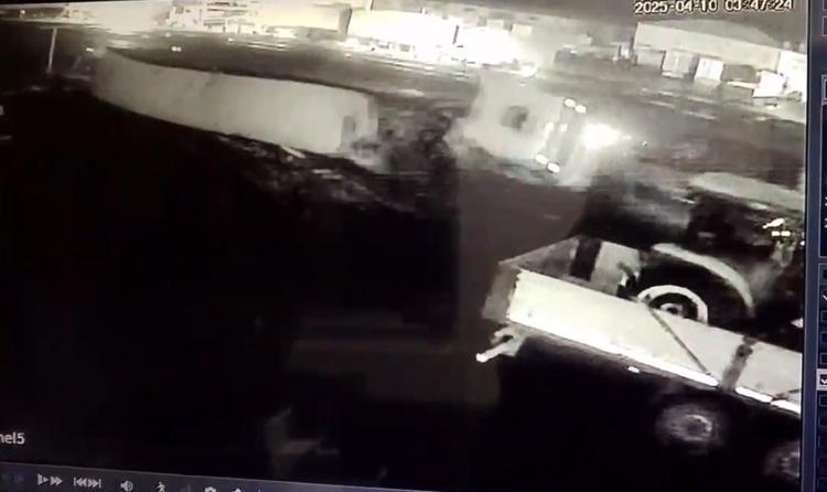 Sebze yüklü TIR'ın devrildiği kaza, güvenlik kamerasında