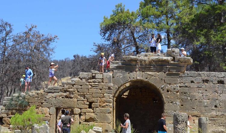 Antalya'nın Manavgat ilçesindeki büyük orman yangınında zarar gören Seleukeia Antik Kenti, yeniden ziyaretçilerin uğrak yeri oldu. Tarihi bölgeye turist getiren rehber Cafer Aşiret, geçen seneki yangında bütün yapıların simsiyah olduğunu belirterek, "Buraya geldiğimde gördüğüm manzara içler acısıydı. Her yer, bu taşlar ve yapılar simsiyahtı. Şimdi epey bir kendini yeniledi. Yangın dönemindeki halinden çok fazla eser kalmadı" dedi.
