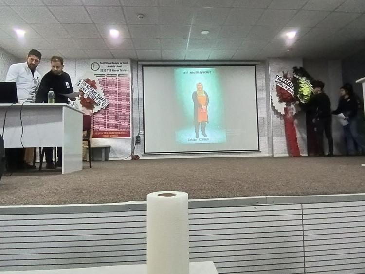 Konuşmaların ardından Zahide öğretmenin masasına karanfiller bırakıldı. Oğlu Serhat Ceylan ise annesinin fotoğrafına sarılarak gözyaşı döktü.