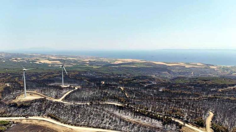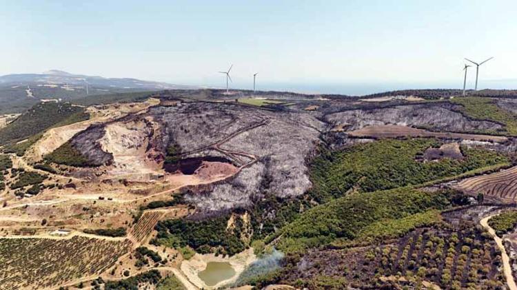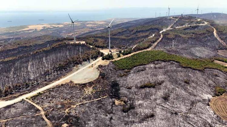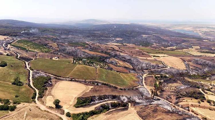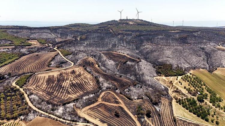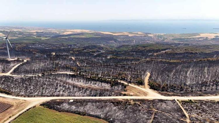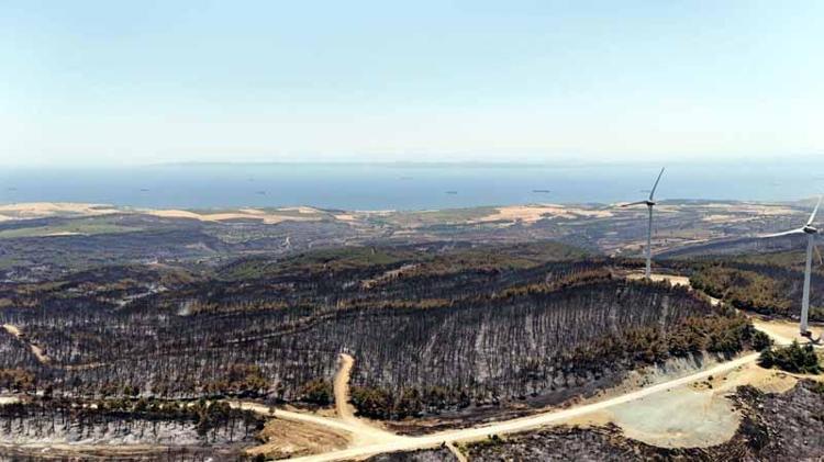 Tekirdağ’daki orman yangınında zarar gören alanlar havadan görüntülendi