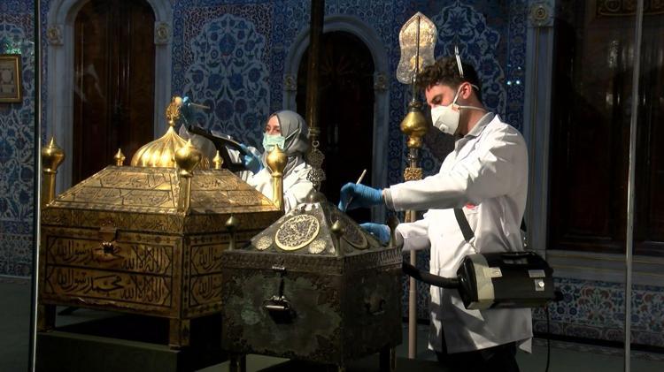 Fatih’teki Milli Saraylar Mukaddes Emanetler Dairesi'nde birçok önemli tarihi eser bulunuyor. Kutsal Emanetlerin başında Hz. Muhammed'e ait Hırka-i Saadet, peygamberimizin kılıcı, Uhud Savaşı'nda kırılan dişinin saklandığı mahfaza, mektupları, sakalı ve ayak izi de bu bölümde bulunuyor. Dört halife ile sahabeye ait kılıçlar, Kâbe anahtarları ve Hacerü'l Esved mahfazası ile Harem-i Şerif’e ait hatıralar da burada sergilenen eserlerden. Milli Saraylar Başkanı Dr. Yasin Yıldız Kutsal Emanetler Dairesi'ndeki çalışmalar ve buradaki eserlerle ilgili açıklamalarda bulundu.