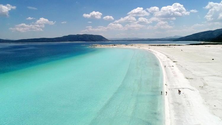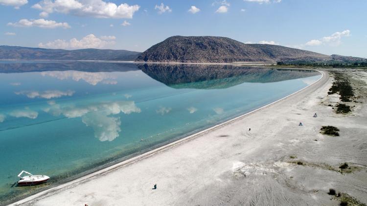 Türkiye'nin en derin tatlı su gölü ve Mars'ın jeolojik yapısına benzerlik gösteren iki noktadan biri olarak kabul edilen Salda Gölü, Maldivler'i andıran beyaz kumulları ve turkuaz renkli suyuyla tatilini sakin geçirmek isteyenlerin akınına uğruyor. Bu yıl Salda Gölü'ne, 500 bin turist bekleniyor. Mehmet ÇINAR/BURDUR, (DHA)