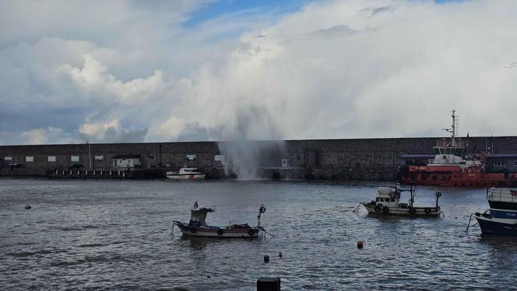 Kayalara çarparak dalgaların patlaması görüntülendi. Dalgalar zaman zaman Zonguldak Limanı’nın mendireğini aşarak liman içine düştü.