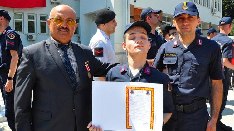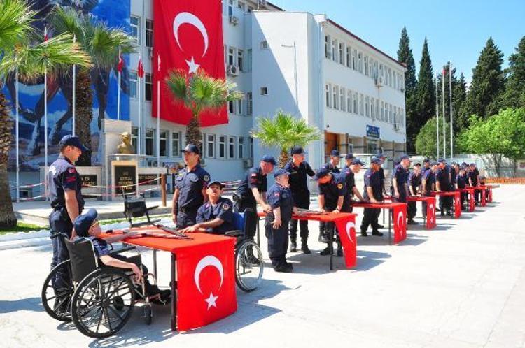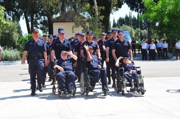 Düzenlenen yemin töreninde engelli jandarma erler bir günlük askerlik yapmanın sevincini yaşadı.