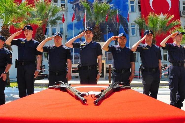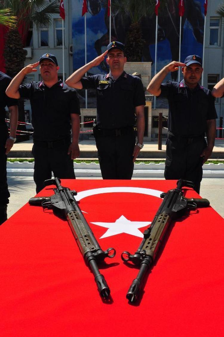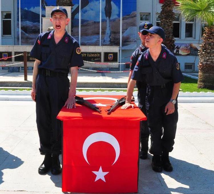 Ellerini Türk bayrağı ve tüfek üzerine basarak ettikleri yeminin ardından vatani görevlerini tamamlayan engelli jandarma erlere Manisa İl Jandarma Komutanı Tuğgeneral Selçuk Yıldırım tarafından terhis belgeleri verildi.