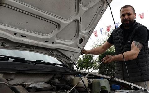 Arızalanan aracını, gaz koluna ip bağlayıp, 1,5 kilometre uzaklıktaki sanayiye götürdü