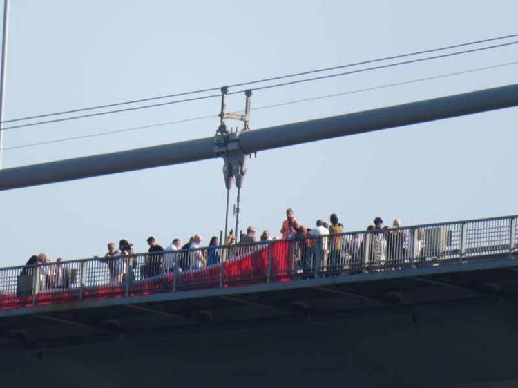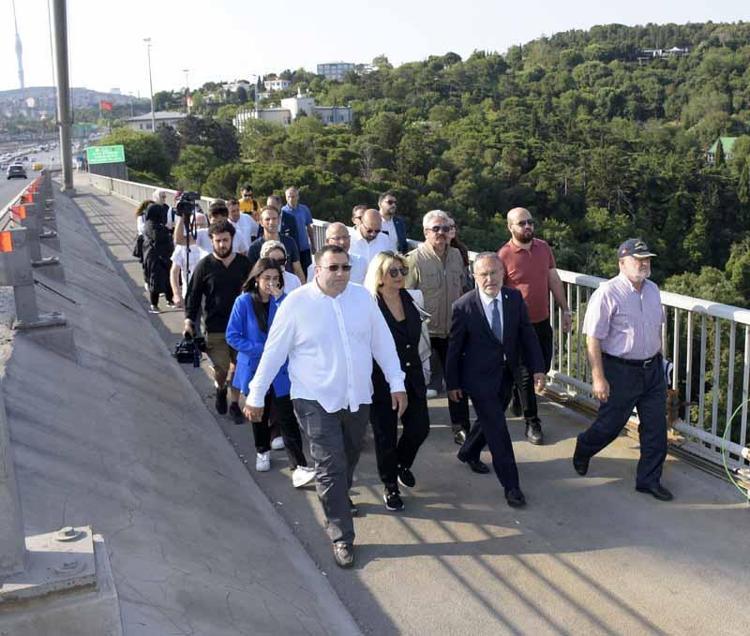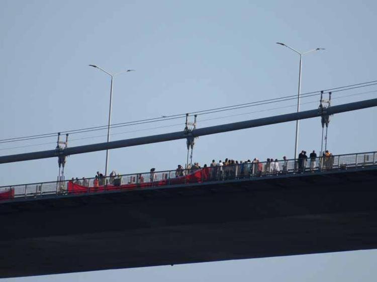 Grup, konuşmanın ardından 15 Temmuz Şehitler Köprüsü'nün ortasına kadar yürüdü. Burada, üç noktadan Türk Bayrağı ve 15 Temmuz Derneği flaması köprüye asıldı.