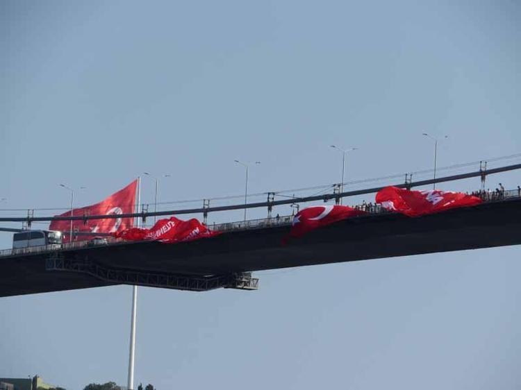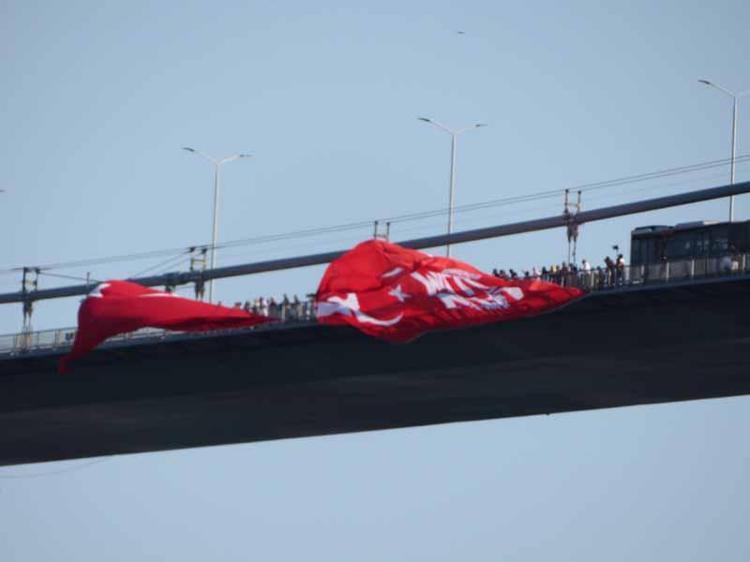 15 Temmuz Demokrasi ve Milli Birlik Günü'nün 7'nci yıl dönümünde, İstanbul Valiliği ile 15 Temmuz Derneği iş birliğiyle 15 Temmuz Şehitler Köprüsü'ne Türk Bayrağı asıldı.