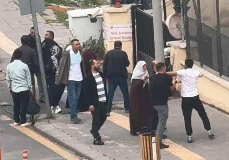 Diyarbakır Adliyesi'nin çıkış kapısı önünde, iki aile arasındaki tekmeli yumruklu kavga, kameraya yansıdı.