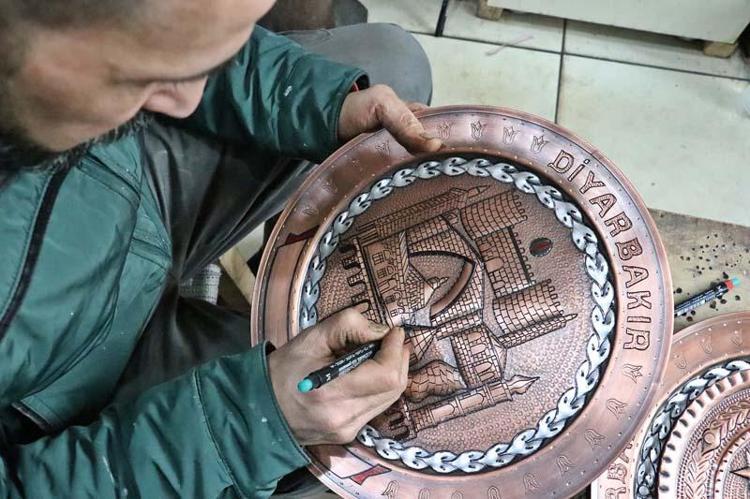 Diyarbakır'da 25 yıldır bakır işlemeciliği yapan Hasan Barakacı (42), kentin 9 sembol figürünü tek levha üzerine işledi. Barakacı, "Genelde müşteriler tek figürü talep etmiyor. Bunun için figürleri bir araya getirip, böyle bir tablo çıkardık. Müşterilerin talebi, Diyarbakır'ın bütün güzelliklerinin tek tablo içerisinde olmasıdır" dedi.