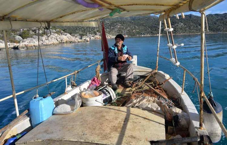 Demre ve Kaş ilçelerinden tekne turlarıyla bu koyları gezen ve denize girenlerin ardında bıraktığı çöpleri ise 30 yıldır Cevdet Eren topluyor. 'Kader-2' isimli pancar motoru takılı küçük teknesiyle her sabah gün doğmadan koyları tek tek dolaşıp çöpleri temizleyen Eren, belediyeden 2 yıl önce emekli olduktan sonra da çöpleri toplamaya devam ediyor.