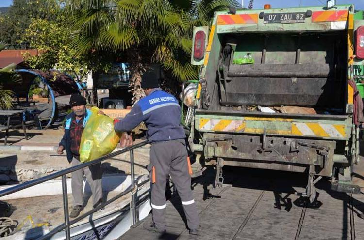 İlçe merkezinden gelen çöp toplama aracıyla da 05.30-06.00 arasında transferin sağlandığını kaydeden Kartın, "Ayrıca Kekova Adası ve çevresinde bulunan Akvaryum, Tersane, Batıkşehir, Hamidiye, Burç, Gökkaya, Buzağılık, Salyangoz gibi tur tekneleri ve yatların kullandığı koylarda ve adacıklarda bırakılan çöpleri de topluyor.