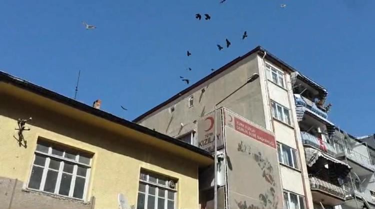 Gemlik'te, Dr. Kazım Kaya Mahallesi Orhangazi Caddesindeki 4 katlı binanın çatısının üzerinde uçan kargaları görenler, bir karganın çatıdan sarkan ipe dolandığını fark edince itfaiyeye haber verdi.