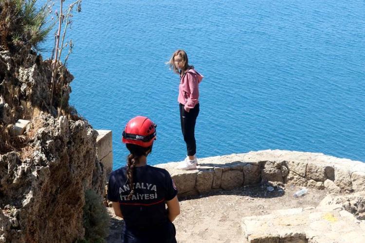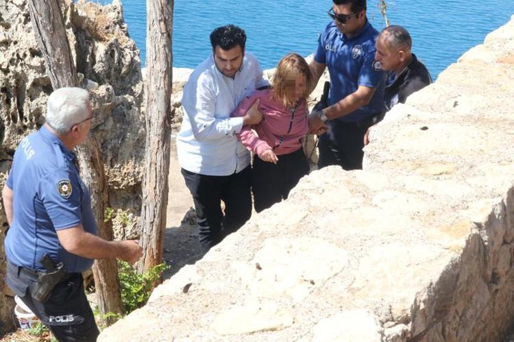 Antalya'da 40 metrelik falezlerin üzerine çıkan Rabia T. (26), polis tarafından güvenli bölgeye alındı. Rabia T., polise "Bırakın beni yanlış yapıyorsunuz" diye tepki gösterdi.