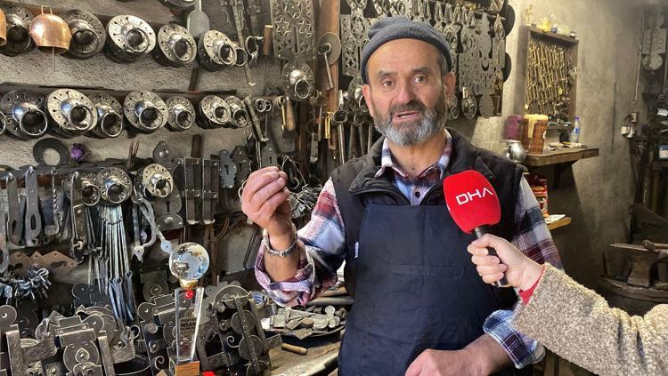 1978 yılında Demirciler Çarşısı'nda çıraklığa başladığını belirten Şahin, "Aşama aşama kalfa olduk. Kalfadan sonra bu meslekte ustalık terfisi var. 1986 yılında kendi iş yerimizi açtık. 46 yıllık demirci ustasıyım. İlk dönemlerde diğer komşular gibi tarım aletleri yapıyorduk. 90'lardan sonra Safranbolu'da UNESCO hız kazandı. Eski eserlerin restorasyon ihtiyaçları oldu. Bu restorasyon ihtiyaçlarında da şu anda evlerin üzerinde mevcut olan kilit, tokmak, kulp gibi bir ahşap kapının üzerinde bulunan metal dekorları yapmaya başladık. Burası, 230 yıla yakın bir arasta. Kuruluş amacı, demircilik yine yaşatılan demircilik. Safranbolu'da orijinalliğini koruyan tek çarşı burası. Cumhurbaşkanlığı bize 'Yaşayan İnsan Hazineleri' ödülünü takdim etmek için Beştepe'ye çağırdı. Cumhurbaşkanımıza Safranbolu'dan selamlarımızı ilettik. O da aleykümselam deyip bize 'Yaşayan İnsan Hazineleri' ödülünü takdim etti. Böylece biz de Safranbolu olarak bu ödülü almış olduk" dedi.