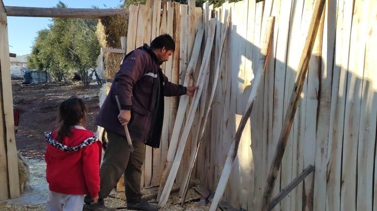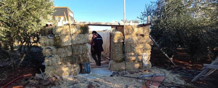 Kahramanmaraş merkezli 7.7 ve 7.6 büyüklüklerindeki depremlerin vurduğu Adıyaman'ın Kahta ilçesinde bağlı Narince köyünde oturan 3 çocuk babası Mehmet Kurt, evinin yanındaki tarlasına saman balyalarıyla barınak yaptı.