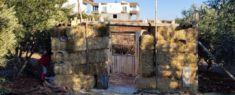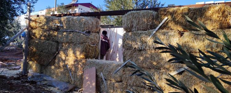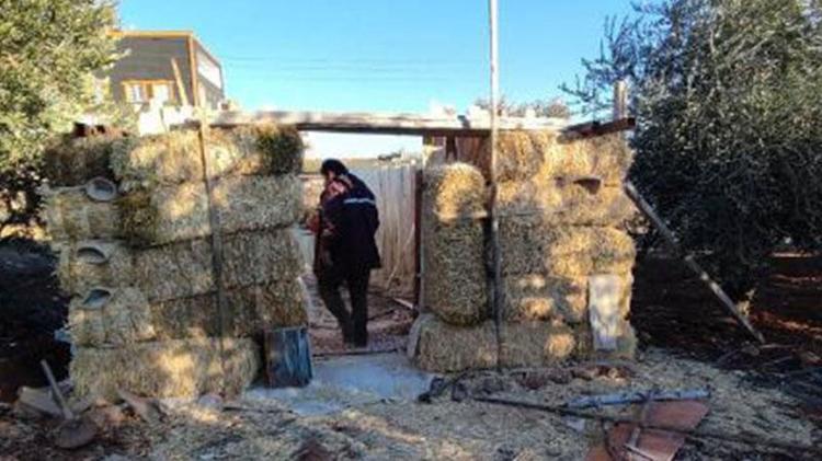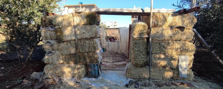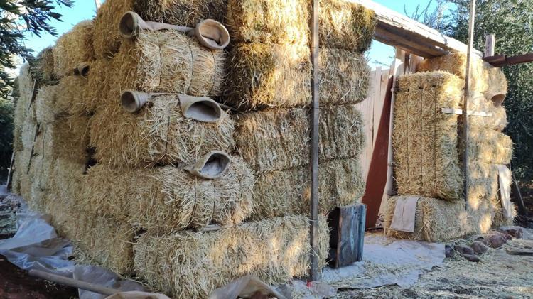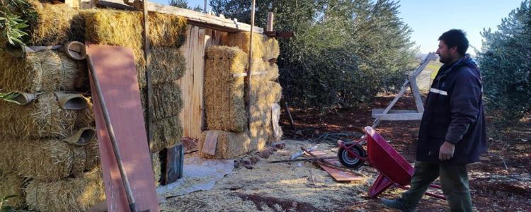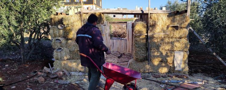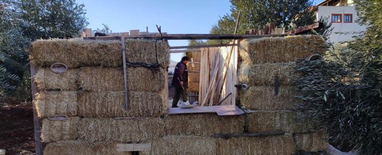Adıyamanlı depremzede, saman balyalarıyla barınak yaptı