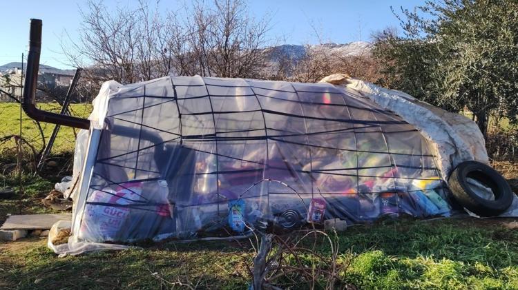 Depremden sonra serada kaldığını, samanın sıcak tutacağı düşüncesiyle saman balyaları ve tahtalarla barınak yaptığını söyledi.
