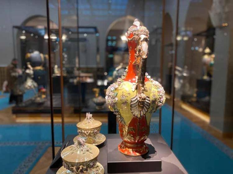 Aynı zamanda Dolmabahçe ve Topkapı Sarayı'ndan koleksiyon eserleri de vatandaşlarımızın beğenisine sunuldu. Ortalama 1000 metrekare bir kapalı alanımız var, 5 bölümden oluşuyor ve içerisinde 1200'e yakın tarihi eser mevcut" dedi.