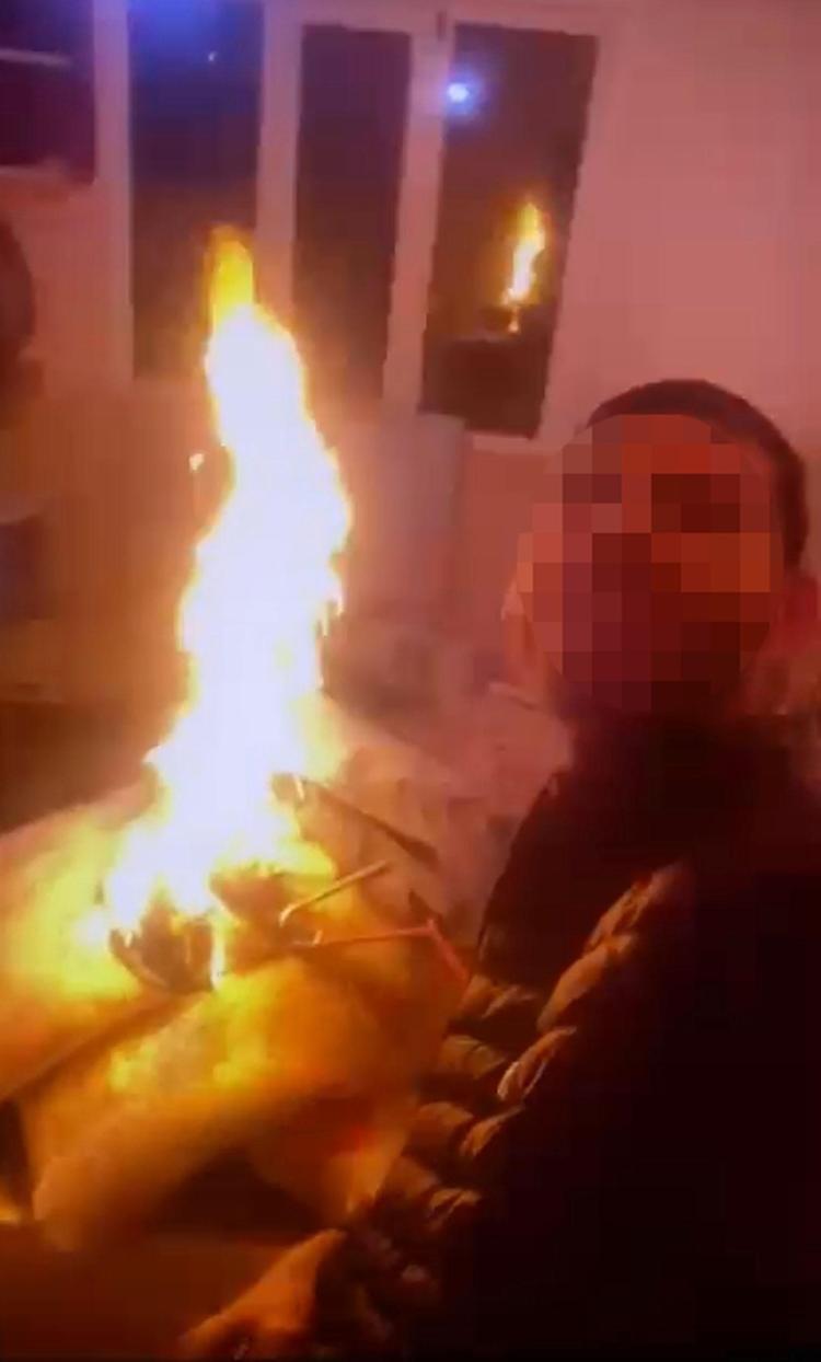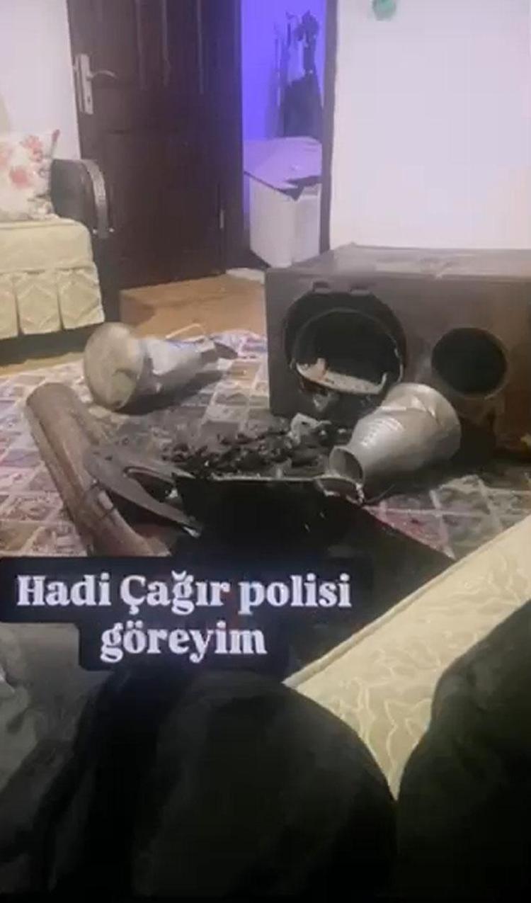 'Hadi polis çağır' ve 'İyi bak eve şimdi yakacağım' notlarıyla evi dağıttığı fotoğrafları paylaşan S.Ö.'nün, "Evi yakacağım. Gördün mü evi? Bir tane eşya koymayacağım bu evde" dedikten sonra eşyaları ateşe verdiği, sonra da "Vallahi çatır çatır da yanıyor" dediği duyuldu.
