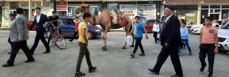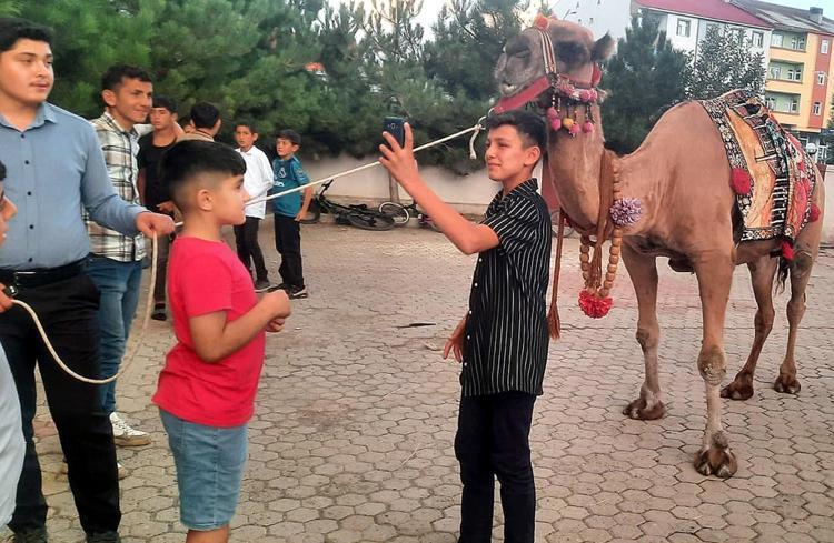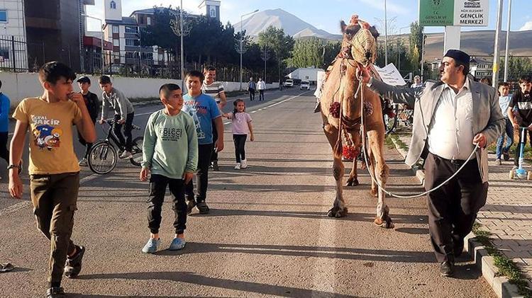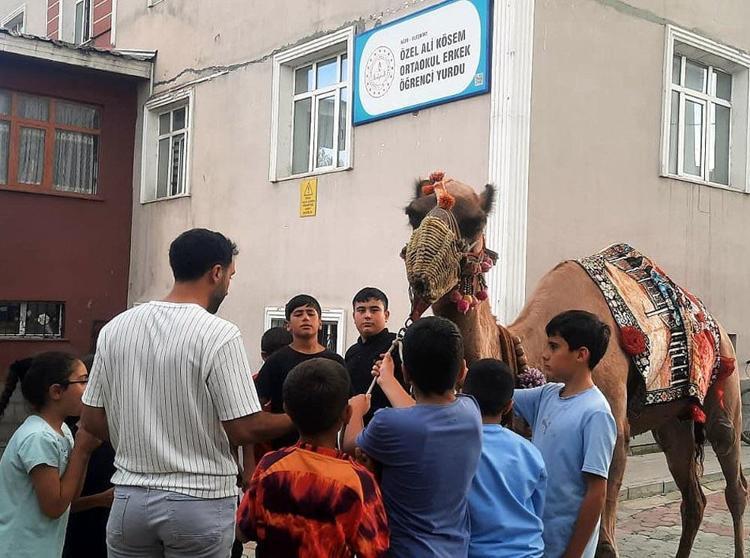 Antalya'da hayırsever iş insanının Mevlit Kandili nedeniyle Ağrı'nın Eleşkirt ilçesindeki erkek öğrenci yurduna kurbanlık gönderdiği deve, ilgi odağı oldu. Kurban edilmeden önce ilçede gezdirilen deveyi görenler, hatıra fotoğrafı çektirdi. Çocuklar ise devenin yanından ayrılmadı.