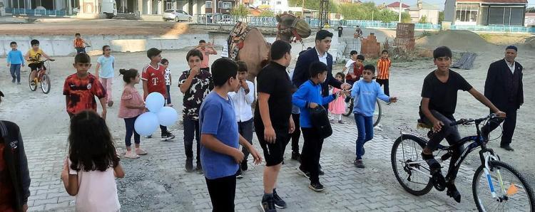Yurtta kalan öğrenciler için iş insanının her yıl kurban gönderdiğini bu yıl ise deve ile sürpriz yaptığını anlatan Nursever, "İsminin açıklanmasını istemeyen bir hayırsever yurdumuza kurban edilmek üzere bir deve gönderdi. Biz de deveyi kesmeden önce ilçede gezdirdik. Halkın sürekli gördüğü bir hayvan olmadığı için büyük ilgi gördü. İlçede yaşayan herkes onunla fotoğraf çektirmek için yarıştı. Kurban edilecek olan devenin etini Mevlit Kandili nedeniyle yurttaki öğrencilerle ilçe halkına ikram edeceğiz" diye konuştu.