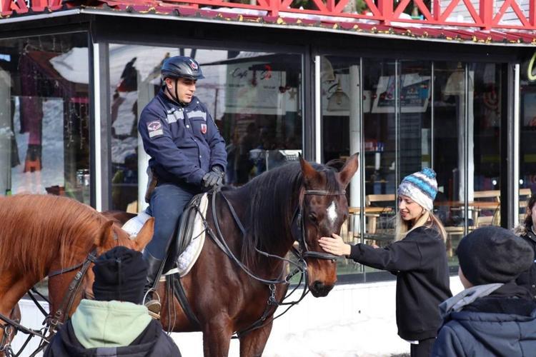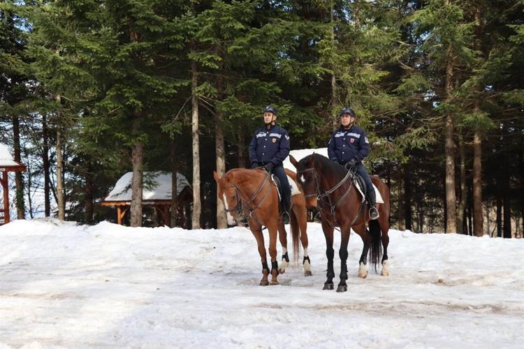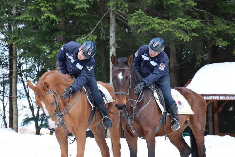 Kocaeli'de, Kartepe Kayak Merkezi çevresinde atlı jandarmalar göreve başladı. Defne ve Ürgen isimli jandarma atları, ilgi çekti.